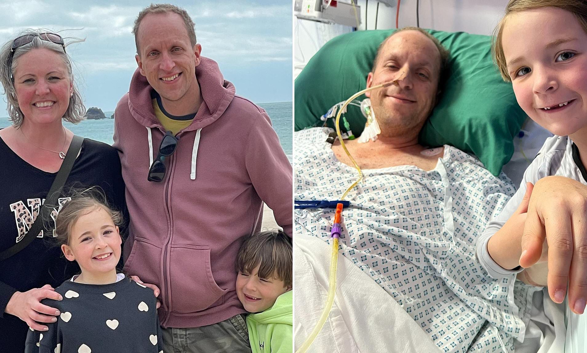 The first sign that something was wrong for Matt Eamer came just days after a family barbecue, celebrating his son’s second birthday. The then 39-year-old father-of-two from Redhill, Surrey, initially dismissed the sudden ‘spiky’ stomach pain as food poisoning. He thought he had cooked a dodgy sausage and assumed it would pass. However, the pain quickly escalated, leading to a rushed trip to A&E where he was sent home with anti-nausea medication. Still feeling dreadful, his wife Sarah, a doula, took him to East Surrey Hospital, where scans revealed a ‘big blockage’ in his large intestine.